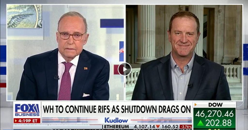 “We’re getting there. We’re starting week three of the Schumer Shutdown and it’s totally irrational, Larry. There’s really not anything they really want. They will certainly talk about other things, but their offer on the table is $1.5 trillion worth of spending, $5 billion for all these crazy programs in USAID that we defunded through the recissions package. They want healthcare for illegal immigrants. That is what they’re offering. But this is about fighting Trump, so that’s why it’s not a rational discussion. We’ll see what happens this week, but as far as what the government is going to do, the President has made clear and Russ Vought made clear what their priorities are. Which is they are going to make sure military members, going to make sure law enforcement gets paid. And if we get a little bit further down the road, there’s going to have to be decisions made because the government is just running out of money. The Republicans have offered a clean [continuing resolution], which is usually the exit ramp here. And the Democrats keep saying no. They are way more interested in grandstanding than governing. That’s the truth.”